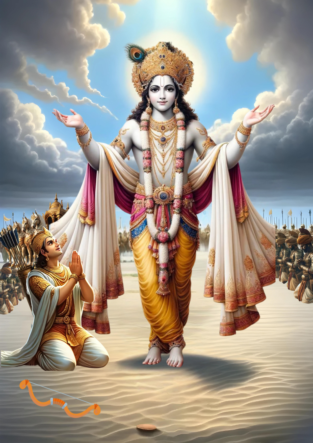 The Takeaway: When Arjuna throws down his bow, he is overwhelmed by attachment. Krishna’s first lesson is simple: “Do not become a coward; give up the weakness of your heart.”